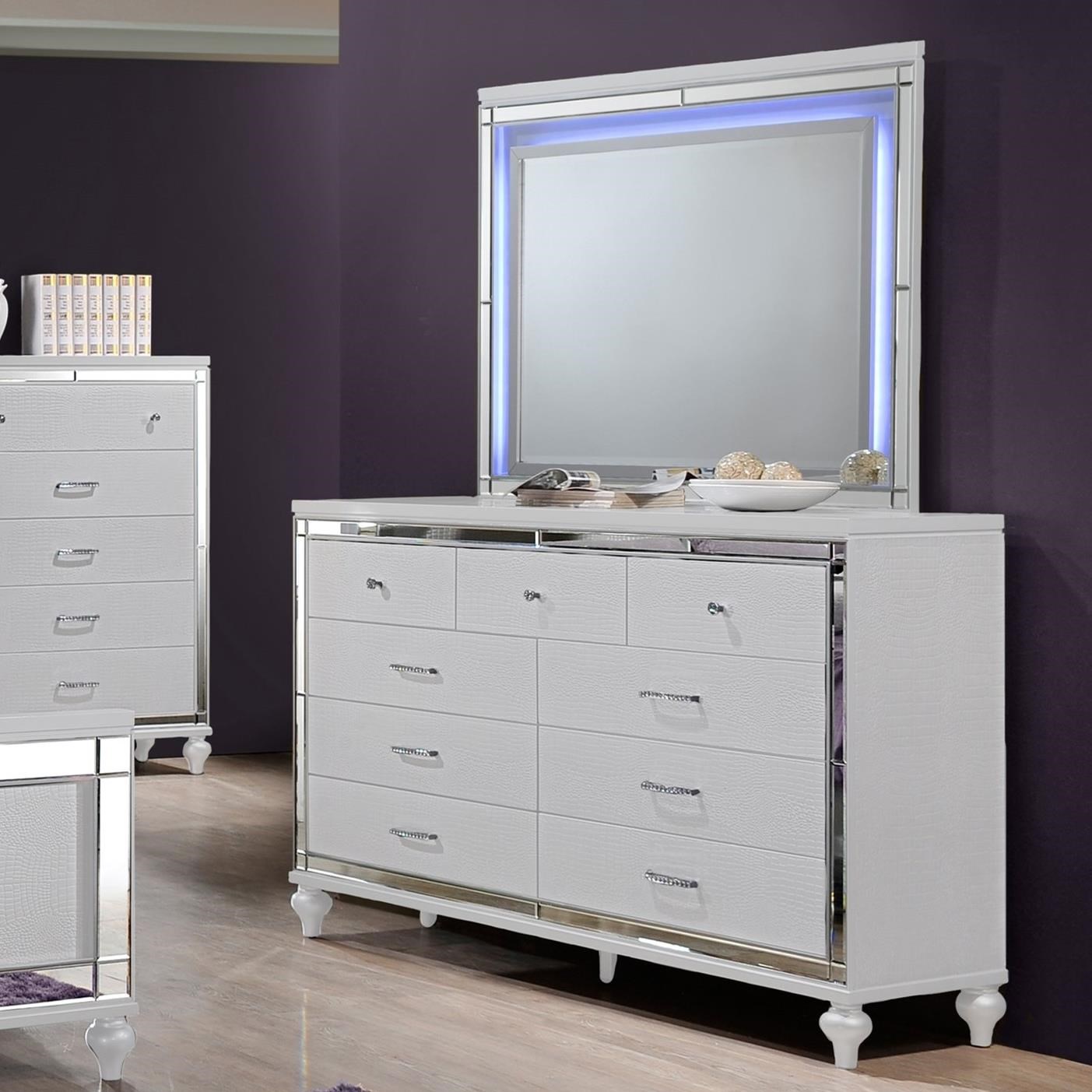 New Classic Valentino Nine Drawer Dresser And Led Backlit Mirror Furniture Superstore Rochester Mn Dresser Mirror Sets